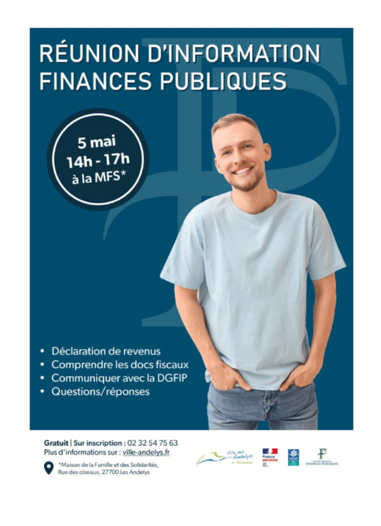 France Services des Andelys organise un atelier DGFIP sur la déclaration de revenus le mardi 05 mai 2026 de 14h à 17h à la maison de la famille et des solidarités.